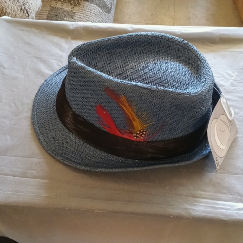 Male brim with feathers on side brand new never worn straw material