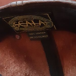 Genuine leather baseball style cap, one size adjustable.fits like a glove, soft leather with a deep chocolate looking vintage brown. OS, brand, SCALA