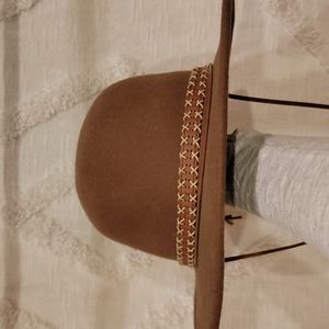 Brown hat. felt. leather hat band. one size. fits is on the larger side.