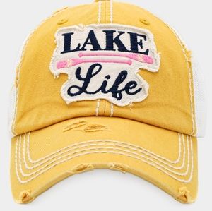 lake life yellow hat ventilation on sides and back. adjustable band