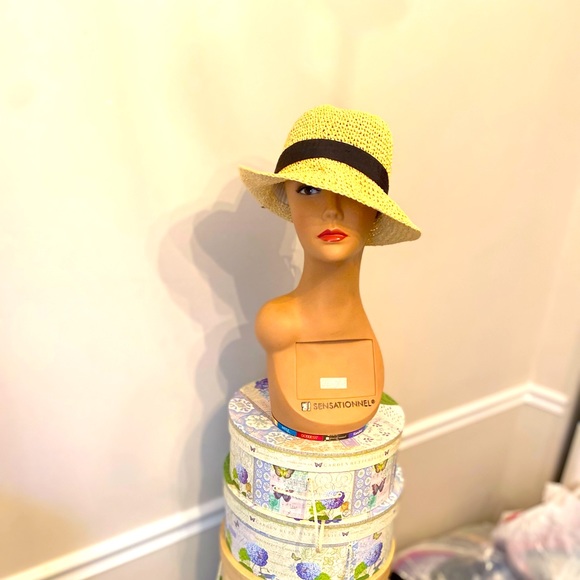 Straw hat with black ban, and in the back. Just waiting to be styled 👌🏾