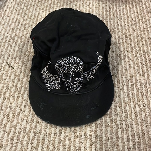 Cool black cap with rhinestone skull and wings! Never worn! Velcro back!