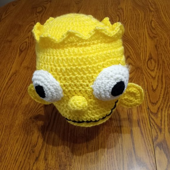 Who doesn't love Bart Simpson. Everybody loves Bart Simpson. This hat will fit a large child or an adult. Made from yellow yarn.