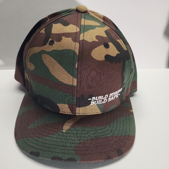 the Classic yupoong "Build strong Build safe" camouflage hat used