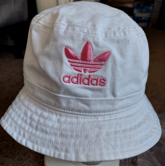White Adidas bucket hat Pink logo