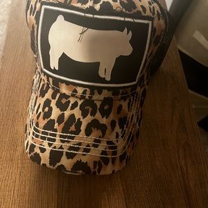 Brand new hat never worn, cheetah print and pig on front, brand is Sunshine and Rodeo.