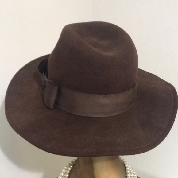 Brown wool hat with bow ribbon