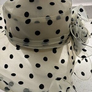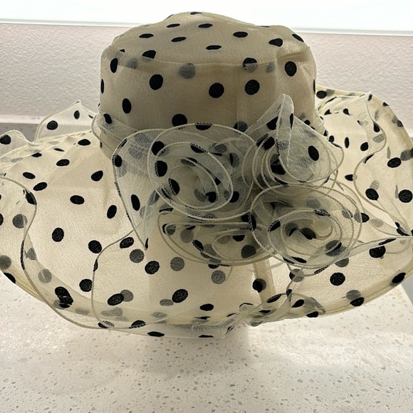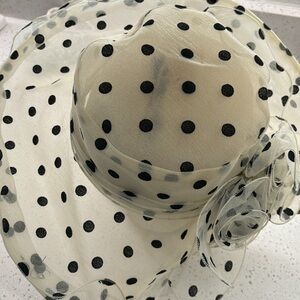 Beautiful polkadot hat, never worn before would be an adornment to your closet and your wardrobe