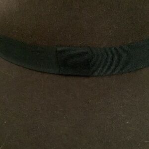 Chocolate Brown felt fedora style hat. From Biltmore for Madewell. Black grosgrain ribbon. Size s-m