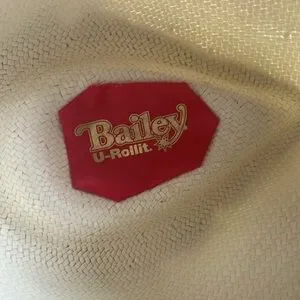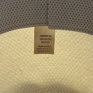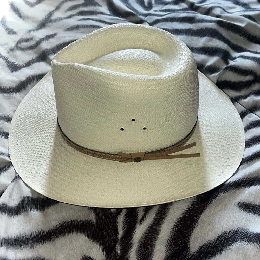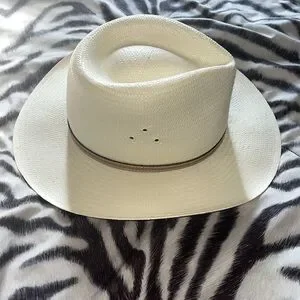 Egg shell color hat with brown leather going around it . Size medium . Great condition .