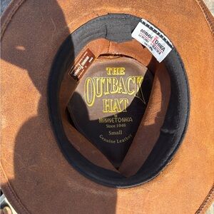 Brown leather Minnetonka Outback hat Size S #leather #cowboy wide brimmed hat cowgir western hat festival Rave rodeo boho alt bohemian