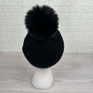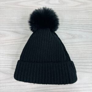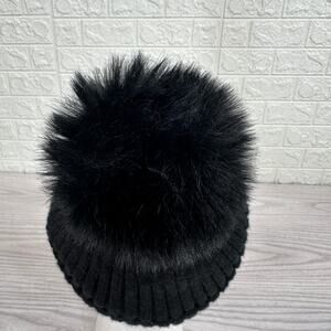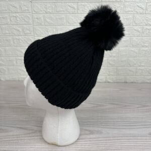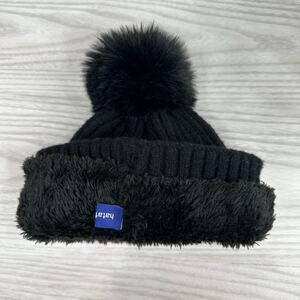 Hat Attack Acrylic Pom Pom Winter Beanie Hat Faux Fur Lined Ribbed Knit Black