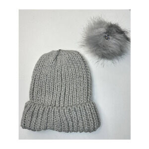 Hat Attack Bryce Ribbed Knit Beanie Gray Detachable Fur Pom Pom One Size NWT