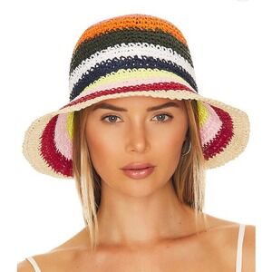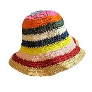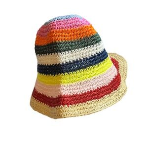 Hat Attack Multicolor Pink Stripe Straw Remy Bucket Hat New