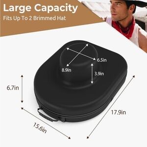 Fits Most Sizes] The hat box measures 17.9 x 15.6 x 6.7 inches, large capacity lightweight and compact, fits most cowboy hats, pony hats, tweed hats and other hats, up to 2 hats can be stored. Fits under an airplane seat or overhead.