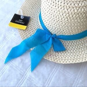 Hat Chapeau floppy Sunhat. Lightweight with a blue bow sash! Great for vacations, days at the beach or pool, for your honeymoon or to wear just because! Completely packable