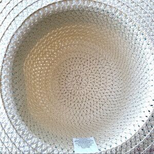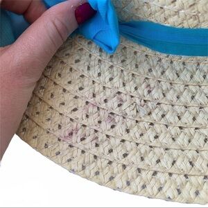 Hat Chapeau Blue Bow Sash Floppy Paper Straw Summer Sun Hat One Size