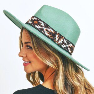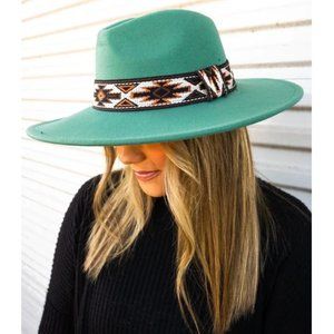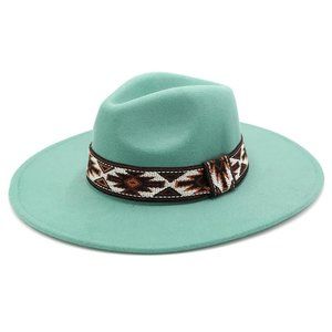 Hat. Turquoise Felt. Southwestern Pattern Band. NWT