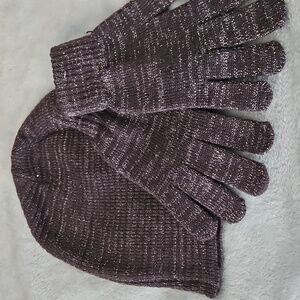 Hat and gloves, new but does not have tags. Gloves are still connected with their hang tag.