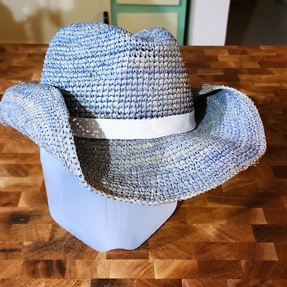 Denim blue distressed cowboy hat, 100% raffia. NWT no price tags, never worn.