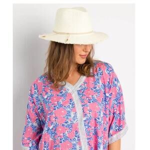 The perfect hat whether you're headed to France or Fiji with SPF protection and a little fringe. Packable style with an adjustable sweatband to fit your head size. Great for smaller heads. Choose from toast or bleach with a tie trim.