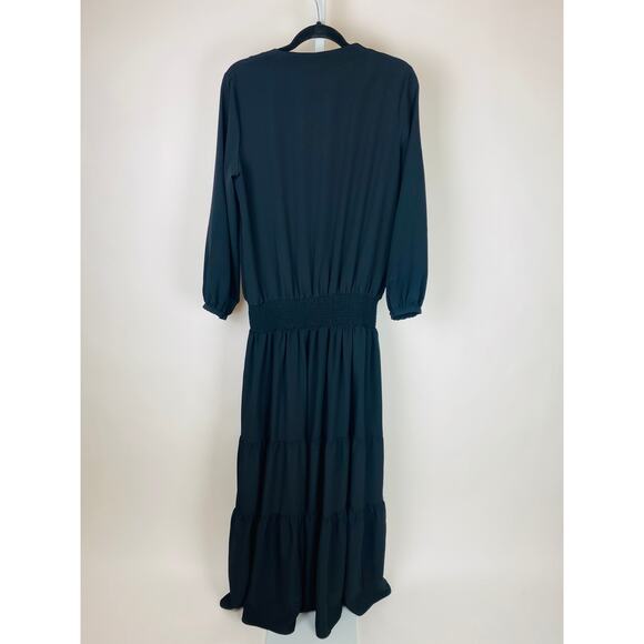 Hatch Size 2 Black Maternity Long Sleeve Tiered Flowy Maxi Dress