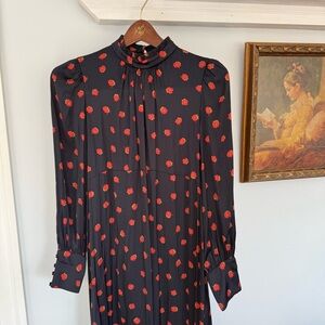 This stunning Hatch maternity dress features a sophisticated mock-neck and long sleeves, perfect for a wedding guest or casual outing. The black and red color palette adds a touch of elegance to the flowing maxi silhouette, ensuring you make a statement wherever you go.