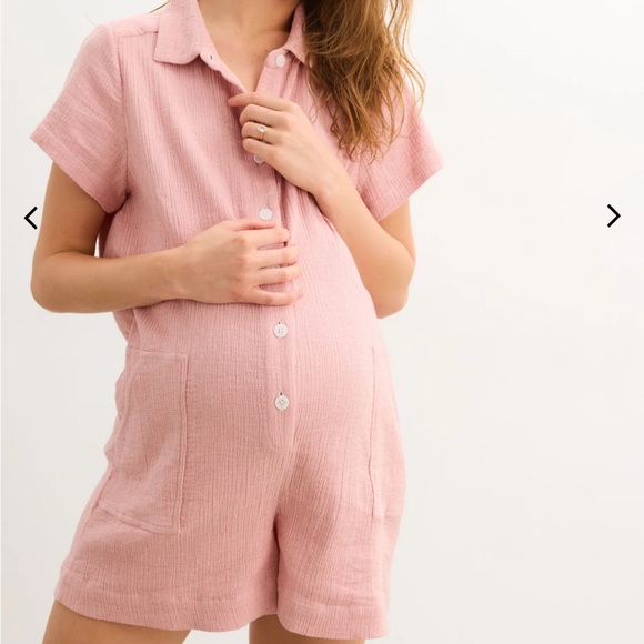 Chic blush romper. Features a classic collar and soft texture.(nursing friendly) ass a sandal or a sneaker!