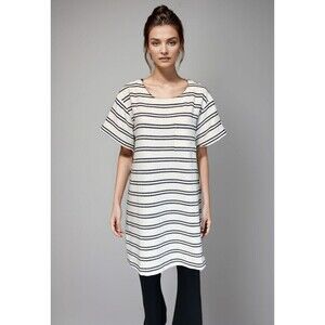 Hatch Dress Sz 2 Striped Maternity Shift Pocket Textured Short Sleeve