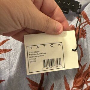 Stylish Hatch dress with a floral design. Light blue base with rust accents. Ideal for any occasion.
