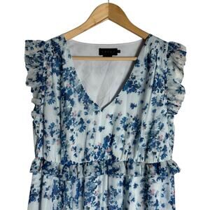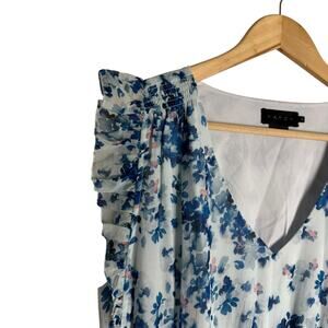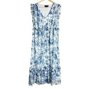 Hatch Luna Blue White Floral Print Ruffled V-Neck Maternity Midi Dress Size 2/M