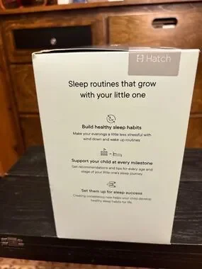 The item in the image is a Hatch Rest+ 2nd Gen smart sleep assistant, a combination sound machine and nightlight designed for babies and children. The item is brand new in the box.