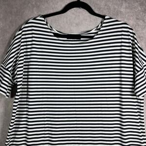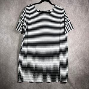 Hatch Maternity Dress Size 1 Blue White Striped Knee Length Short Sleeve Stretch