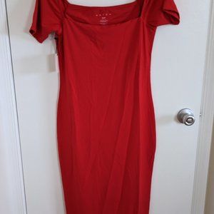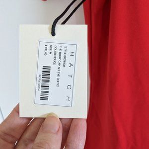 NWT - never worn maternity dress from Hatch. Square neck red dress for work or events. Crafted from an Oeko-Tex certified bamboo-spandex blend that hugs and compresses just right. Dress features a midi cut with a square scoopneck, cute cap sleeves, and a built-in shelf bra for support.