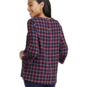 The Nines by Hatch red and blue plaid Maternity Blouse 3/4 Bell Sleeves Size Medium