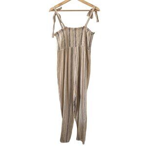 Hatch Maternity Stripe Smocked Jumpsuit Cream Size 1 Small Coastal Beachy Scandi