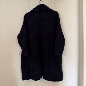 HATCH navy cardigan with ribbed texture. Open front and cozy fit. Ideal for layering.