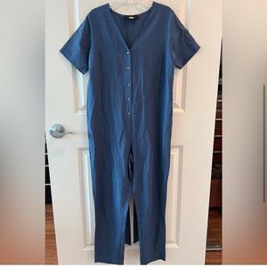 Hatch Navy Blue Noelle Linen Blend Jumpsuit with Waist Tie