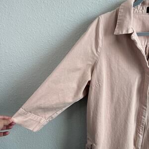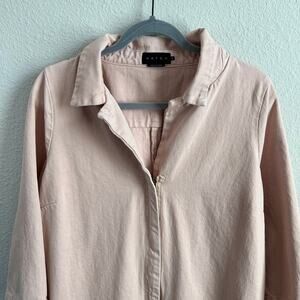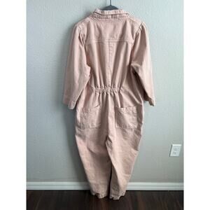 Stylish pink jumpsuit by Hatch. Features a front zipper and three-quarter sleeves. Perfect for casual wear.