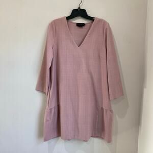 Chic pink mini dress by Hatch. Features a V-neck and long sleeves. Perfect for casual outings.