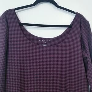 Elegant and comfortable Hatch maternity dress in a stylish purple houndstooth pattern. This sheath dress is perfect for expecting mothers who want to maintain a chic and professional look. Dress it up with heels for a formal event or pair it with flats for a day at the office.