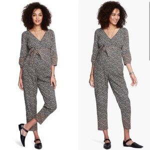 Hatch Sabrina Jumpsuit Ditsy Black Brown Floral 100% Cotton Maternity Size 1