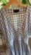 Elegant midi dress by Hatch. Features a sky blue and white check pattern. Short sleeves with a stylish waist tie.