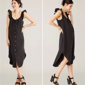 Hatch The Jenna Dress Black Midi Ruffle Linen