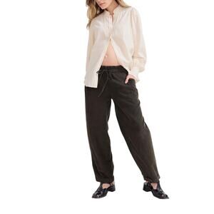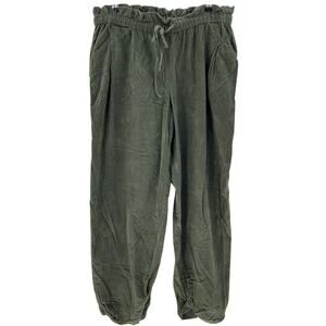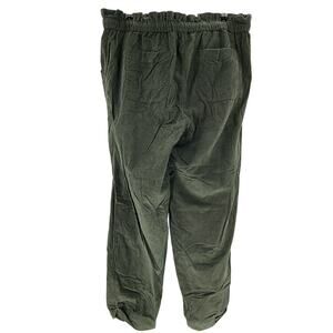 Hatch 'The Jude' Green Cotton Cord Pant Size 3: covered elastic waist with drawstring, patch front pockets, measurements: 16 inch width x 27 inch length.