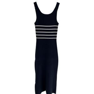 Hatch 'The Kristen' Blue Viscose Ribbed Knit Tank Dress Size 0: featuring delicate ribbed neckline and armholes this dress strikes that sweet spot between preppy polish and effortless wear.