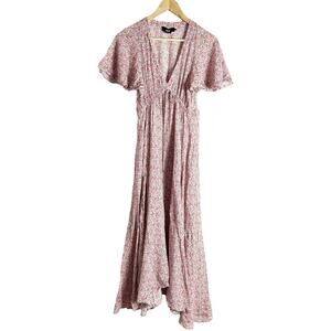 Hatch The Margarette Maternity Printed Flutter Sleeve V-Neck Maxi Dress Size S