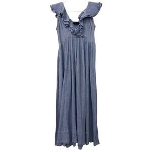 Hatch The Sarah Midi Dress Size 0 XS Maternity Blue Ruffle Gauzy Cotton Cottage