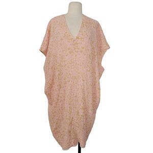 Hatch The Slouch Dress Apricot Silk Cotton V-Neck Lightweight Soft Pullover O/S