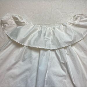 Hatch White Sleeveless Ruffled Elastic Neck Maternity Top Size OS. Excellent used condition. There is a faint pink mark on bottom front neck ruffle as shown in photo. Measures chest 38", length 26".